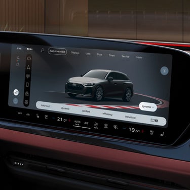Grâce aux éléments intérieurs en haut et en bas et aux matériaux haut de gamme, l’habitacle paraît à la fois épuré et minimaliste. Il est complété par une technologie innovante telle que le design d’éclairage, l’écran panoramique MMI ou l’écran MMI du passager avant.